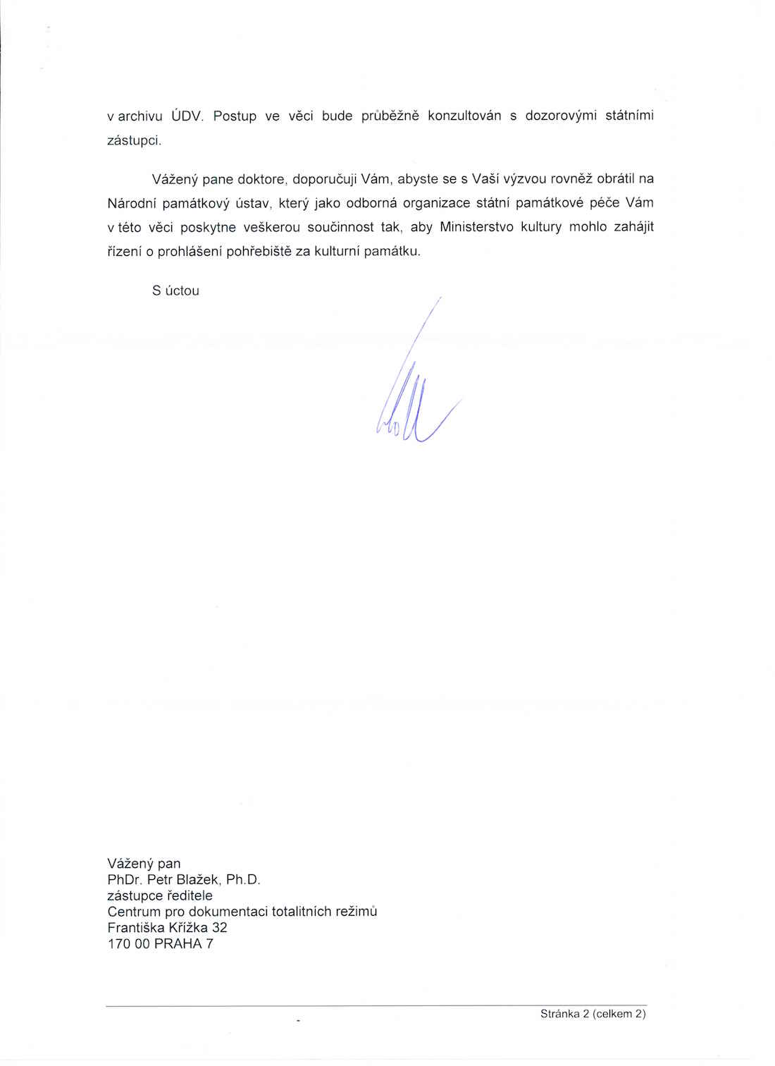 - Nezákonné nakládání s ostatky politických vězňů (Odpověď ÚDV Policie ČR ze dne 25. listopadu 2016)