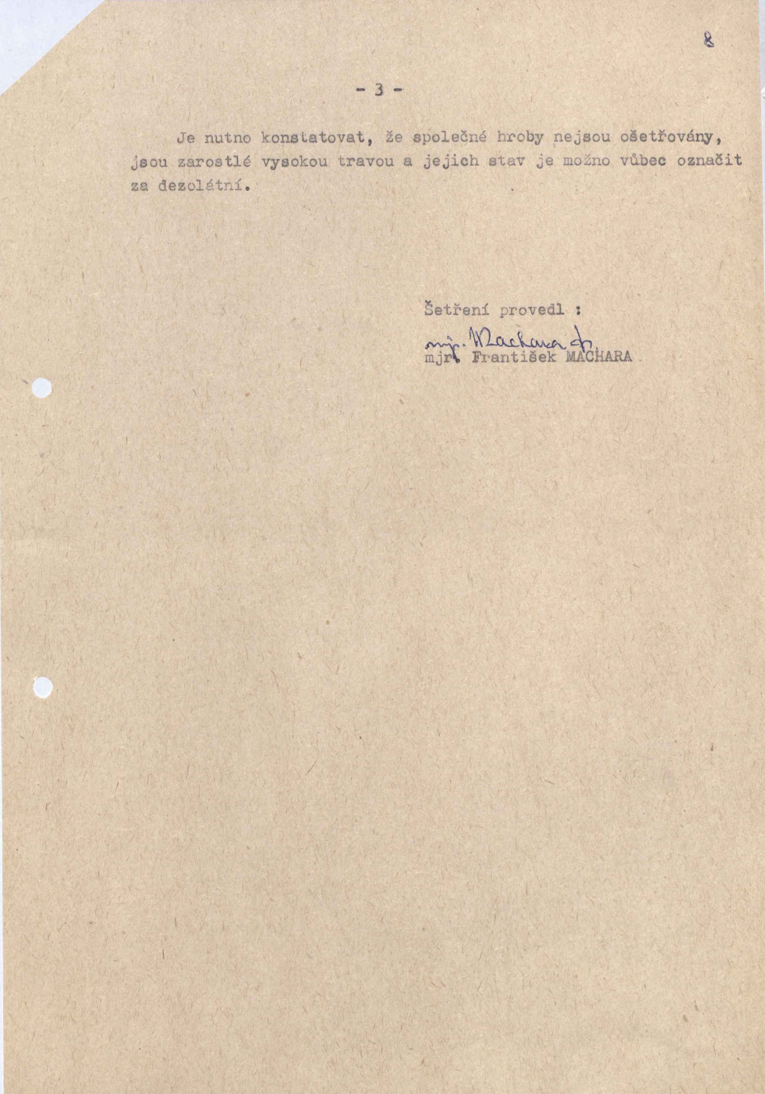 - Záznam o provedeném šetření ve dnech 22. - 23.7.1968 ve věci tzv. společných hrobů na ďáblickém hřbitově (Zdroj: ABS).